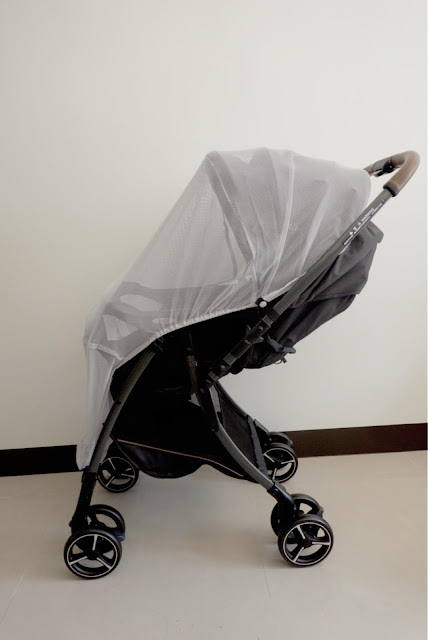 蚊帳是釘釦式的,所以非常貼合推車。